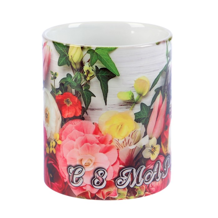 Кружка "С 8 марта!" цветы, полноразмерная печать, c нанесением