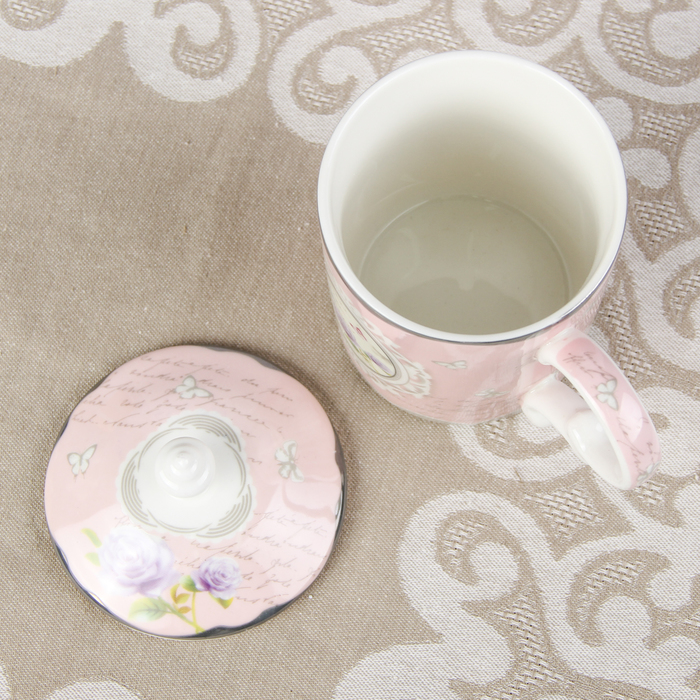 Кружка с керамической крышкой "Винтаж", цвет МИКС
