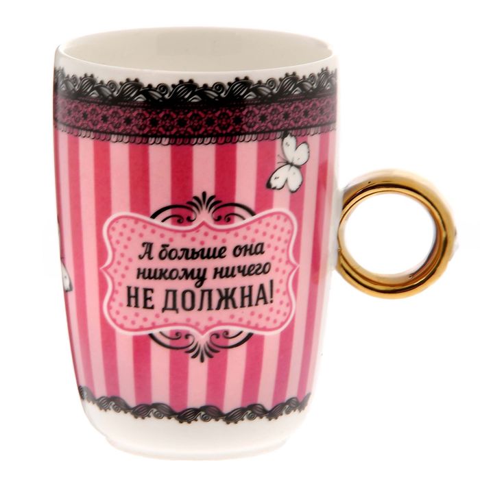 Кружка с кольцом "Девушка", 250 мл с оригинальным и забавным дизайном — неповторимый подарок для близкого человека. Яркие краски и необычная ручка в форме кольца — отличительные черты этого изделия. Благодаря оптимальному размеру она отлично подходит для чаепития с подружками.