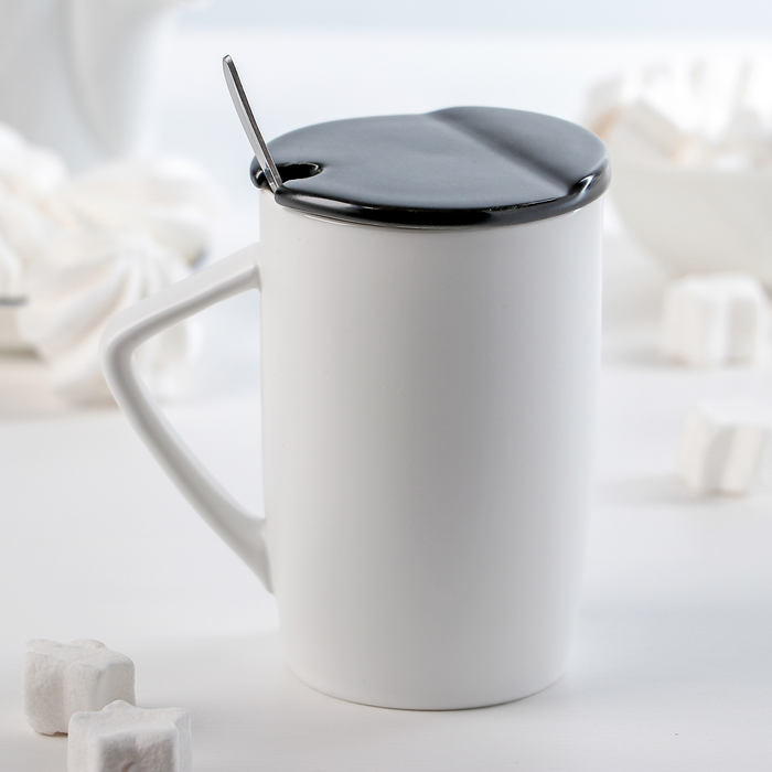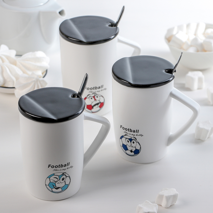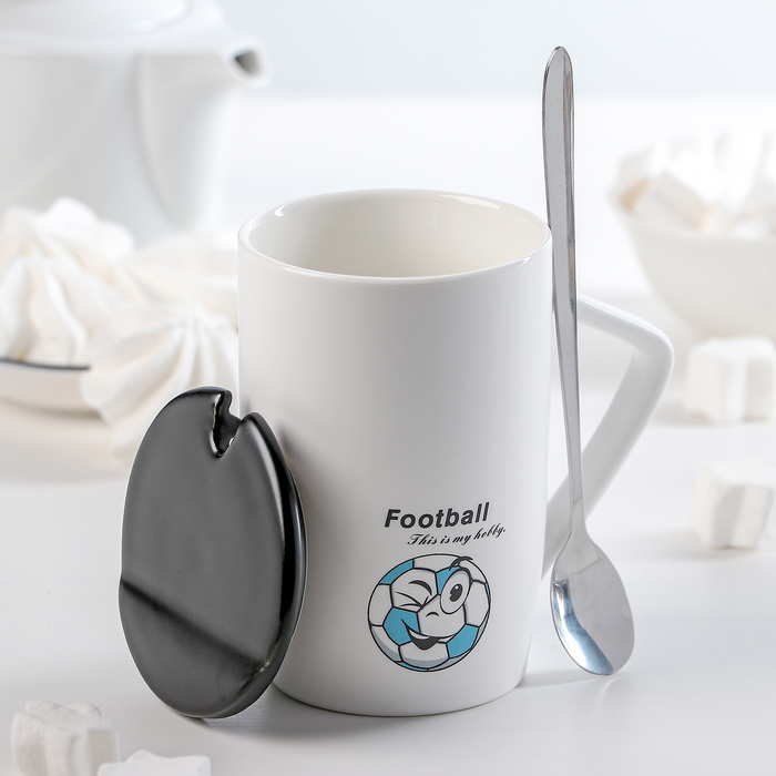 Кружка с крышкой и ложкой "Футбол" 420 мл, 11,5х8х12 см, рисунок МИКС