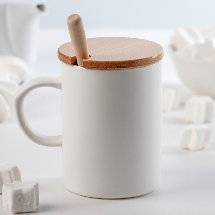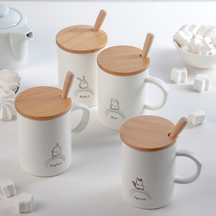 Кружка с крышкой и ложкой "На радуге" 420 мл, 11х7,5х10 см, рисунок МИКС
