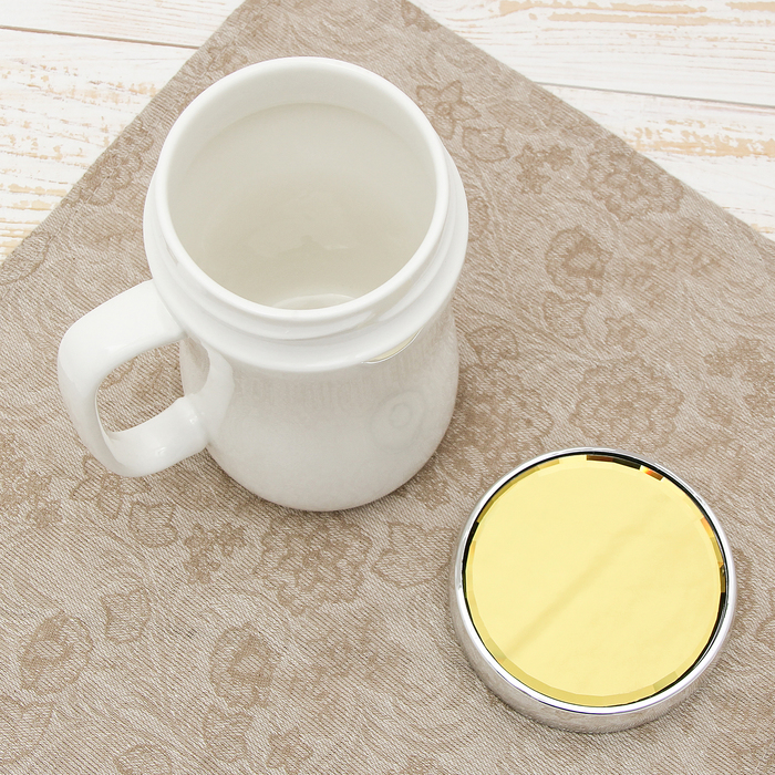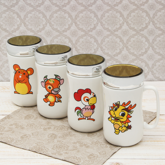 Кружка с крышкой-зеркалом 400 мл "Зверята", рисунок МИКС