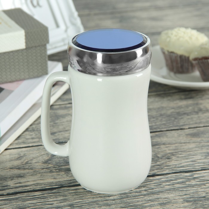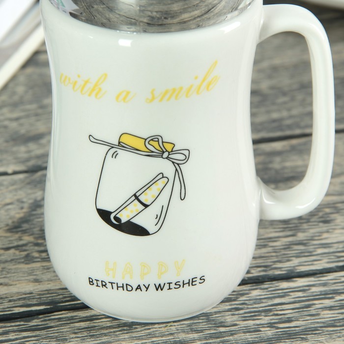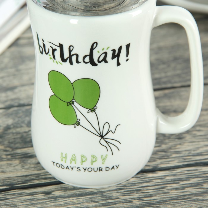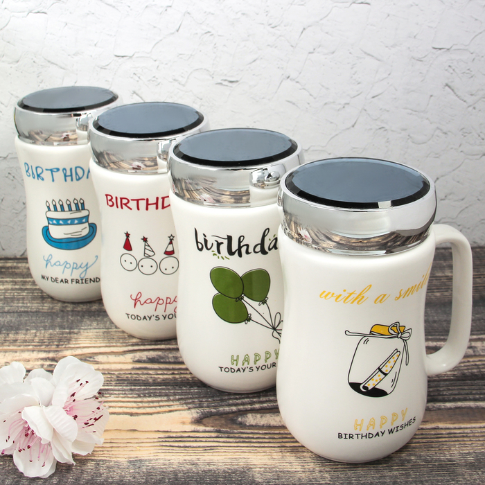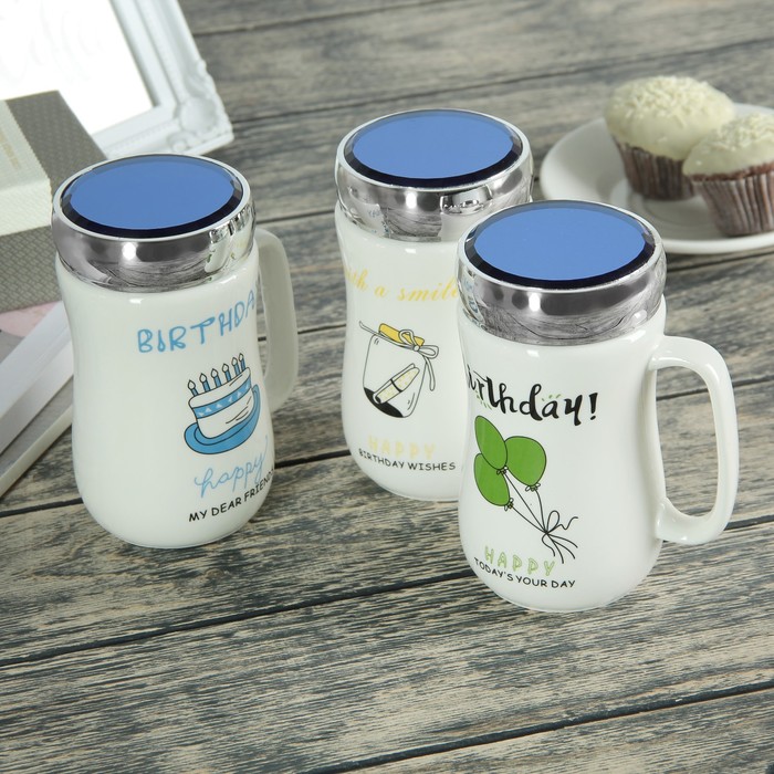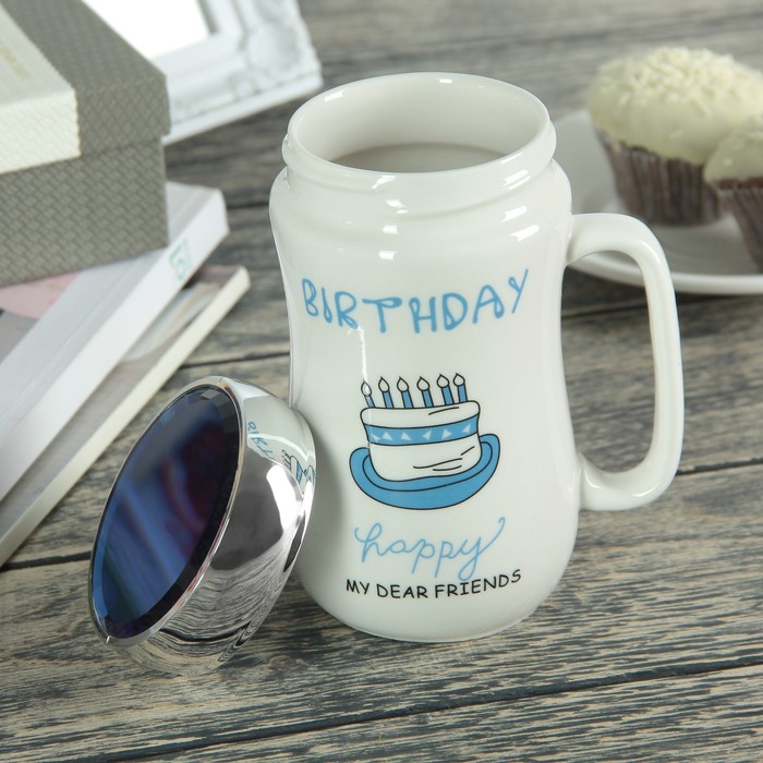 Кружка с крышкой-зеркалом 500 мл "День рождения", рисунок МИКС
