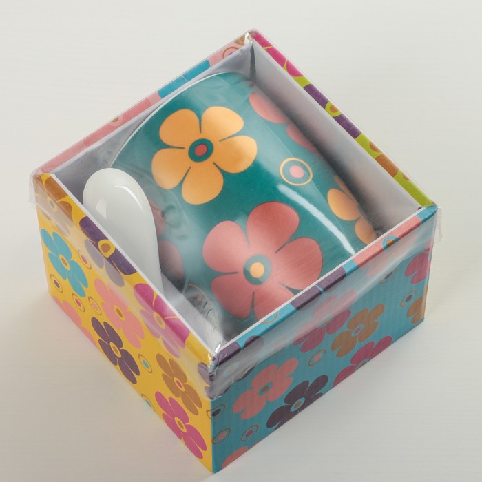 Кружка с ложкой 300 мл "Радуга цветов", цвета МИКС представляет широкую линейку подарочных изделий из качественной керамики. Изящные формы, яркие рисунки, эффектная упаковка – каждое изделие оригинальной коллекции при желании может превратиться в оригинальный комплимент, рассказывающий о ваших теплых чувствах без лишних слов.