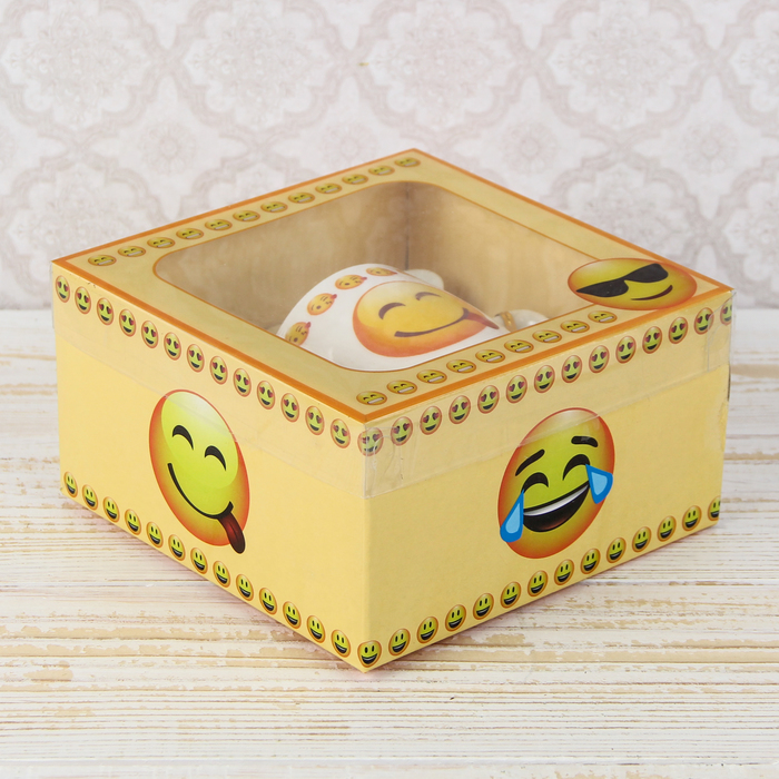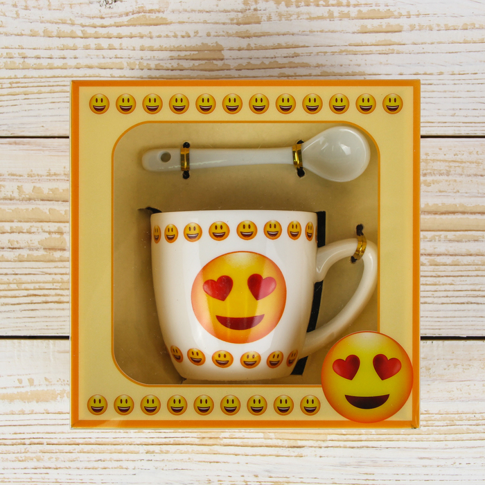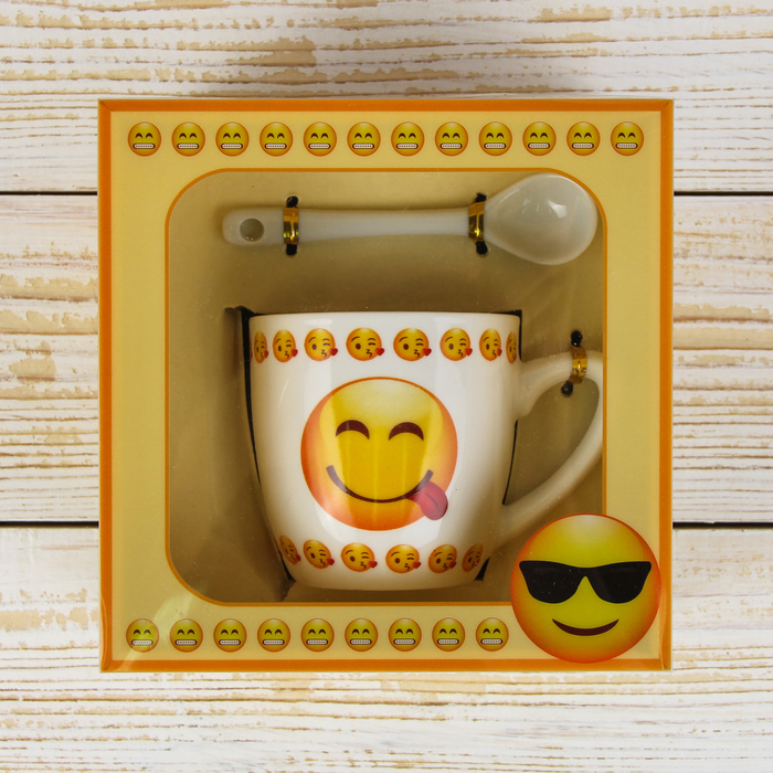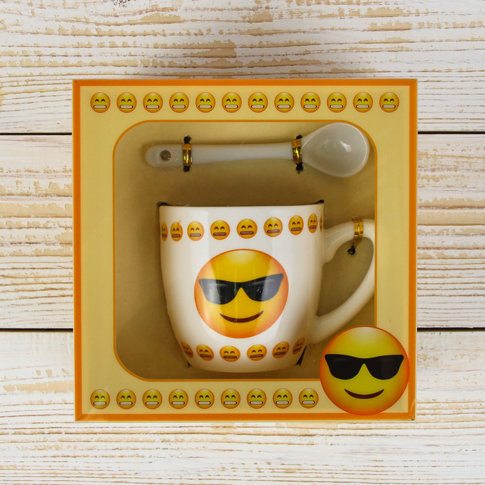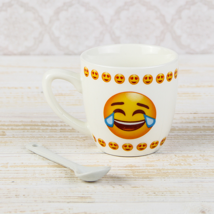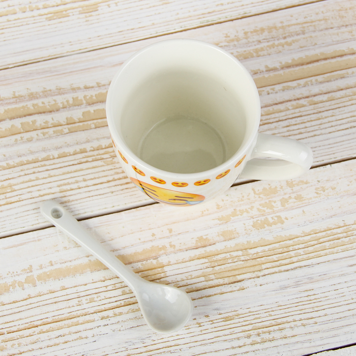 Кружка с ложкой "Смайл", рисунок МИКС
