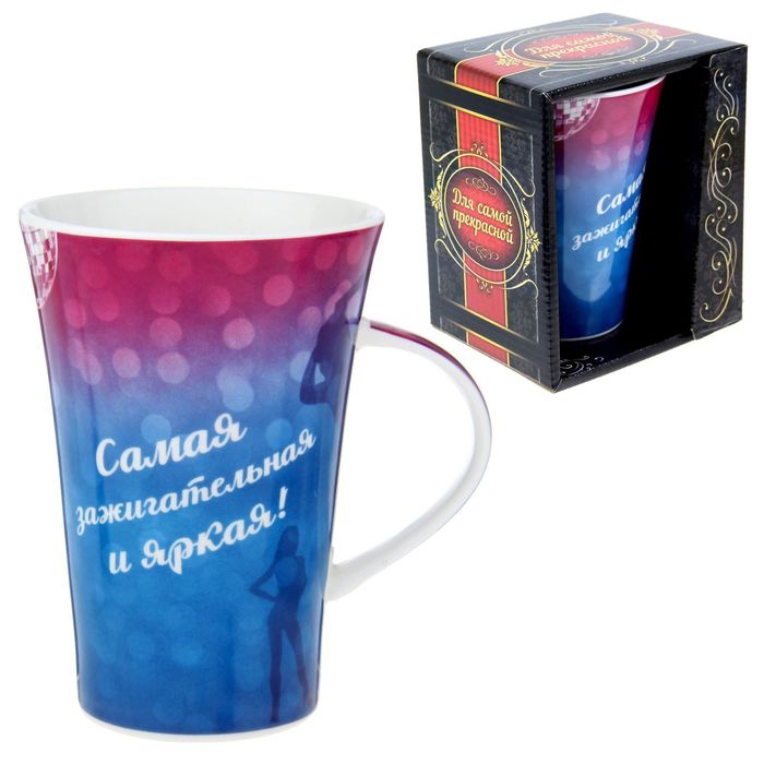 Кружка "Самая зажигательная и яркая", 400 мл создана специально для тех, кому лень постоянно бегать на кухню за чаем. 400 мл — идеальный объём — напиток не закончится раньше времени и не успеет при этом остыть.