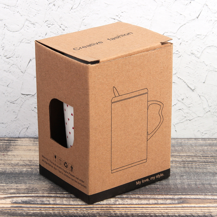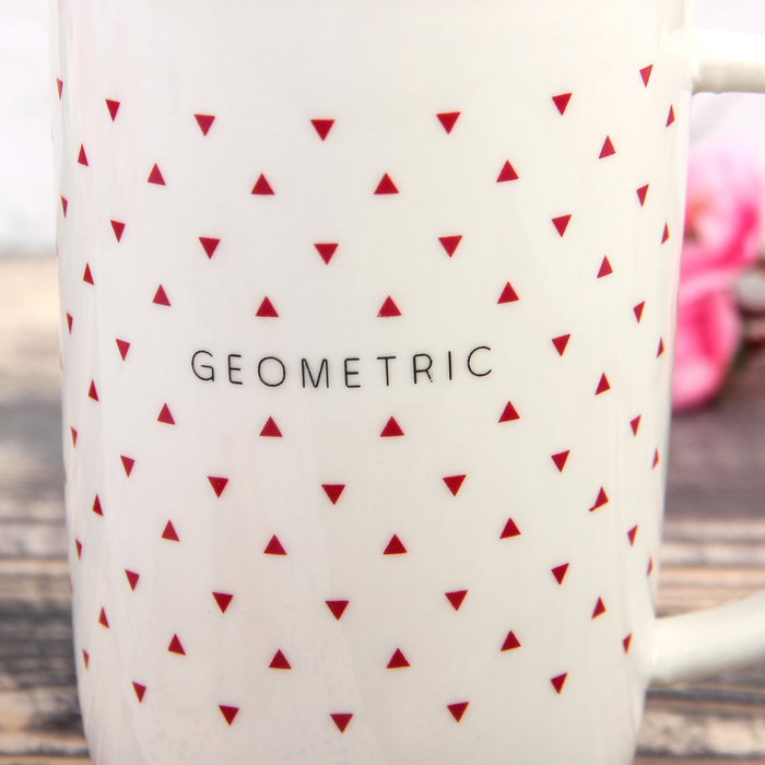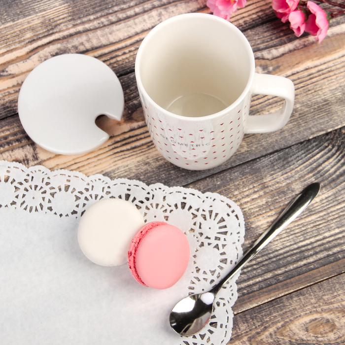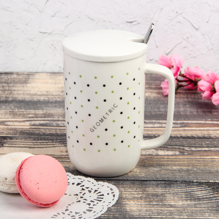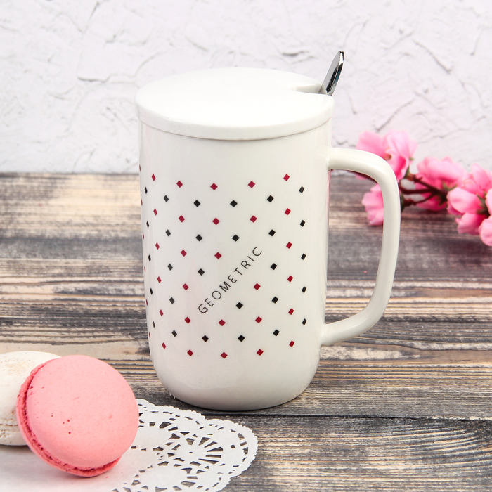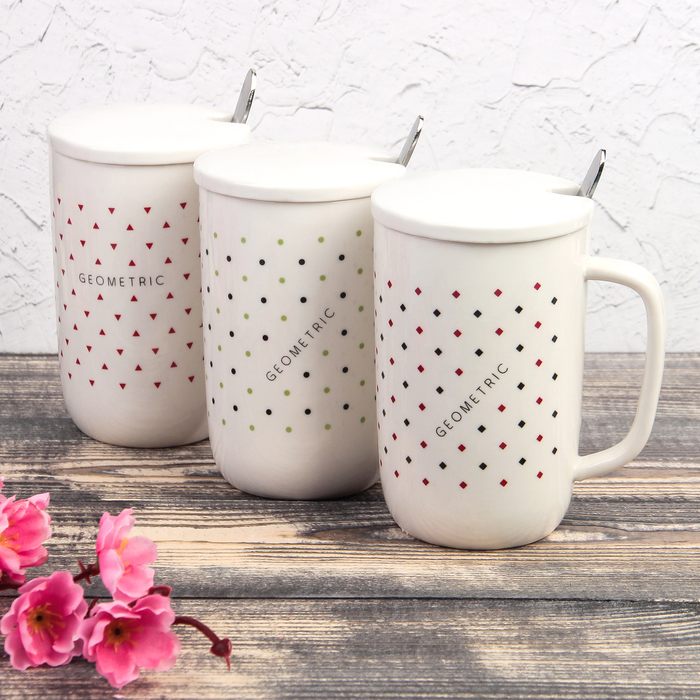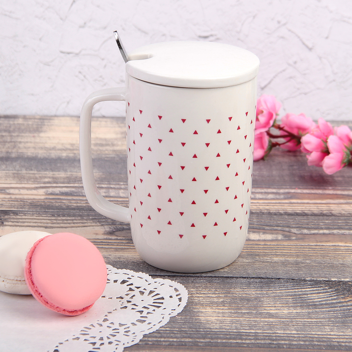 Кружка "Треугольнички", с керамической крышкой и ложкой, цвет МИКС
