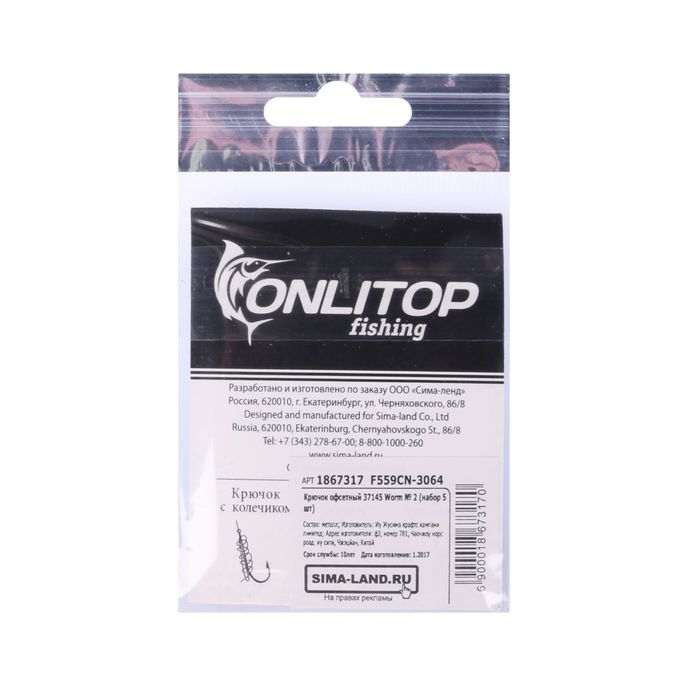 Крючок офсетный 37145 Worm № 2 (набор 5 шт)