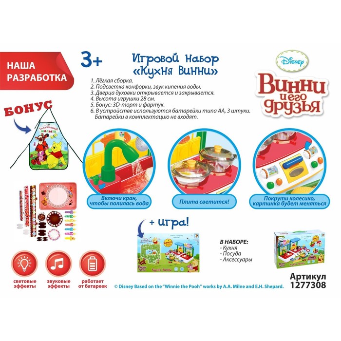 Кухня детская "Винни и его друзья", высота 28 см, свет, звук, МИКС