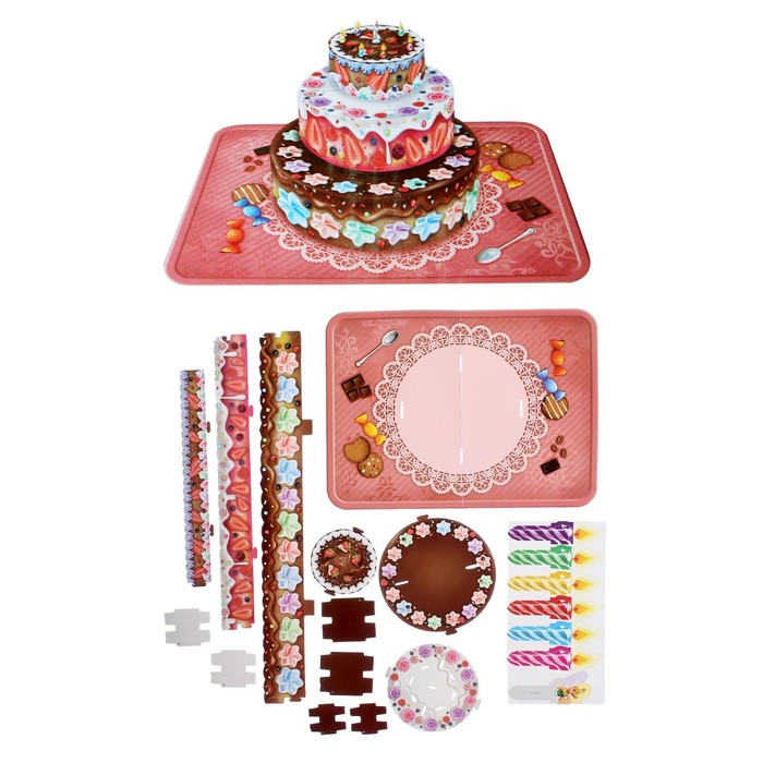 В качестве бонуса в комплектацию входит картонный 3D-торт и фартук.