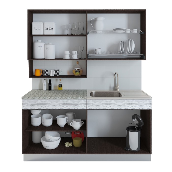 - Кухонная мойка, стеновая панель, посудосушитель в комплект не входят.
