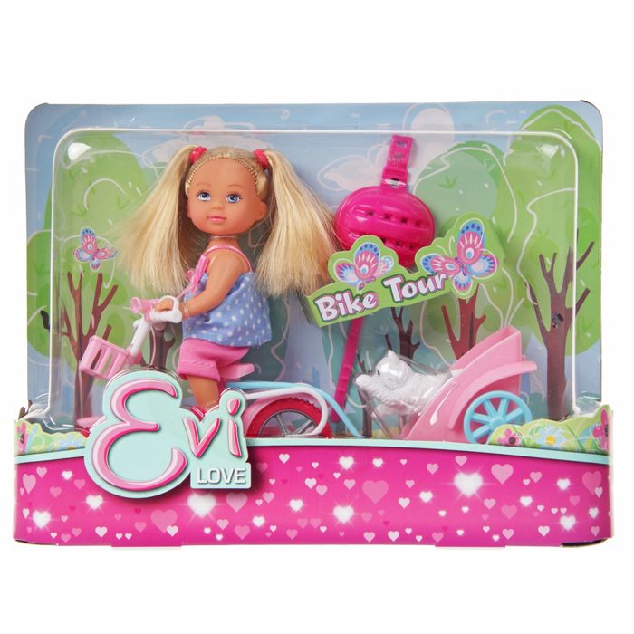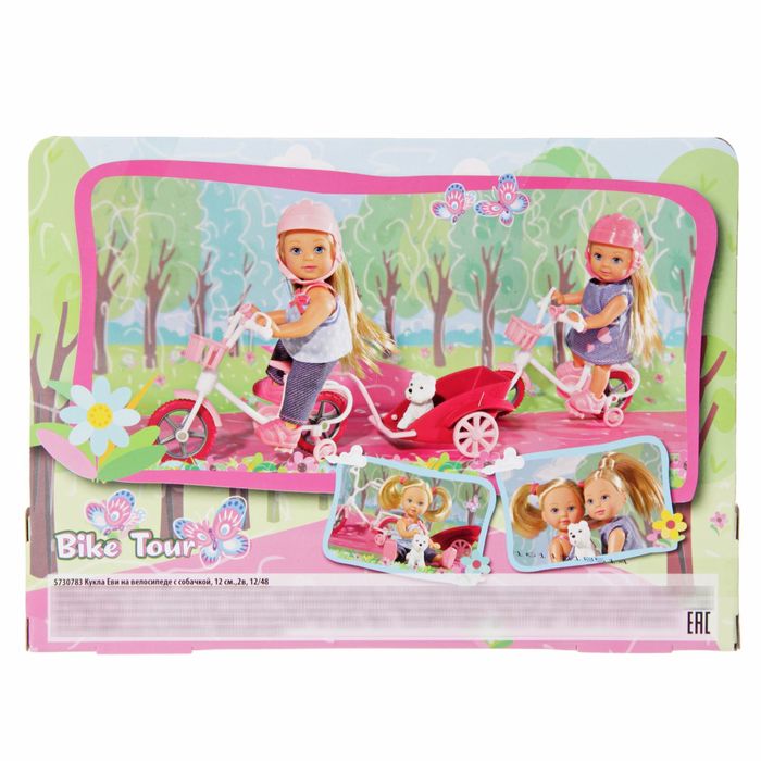 Кукла "Еви" на велосипеде с собачкой, 12 см, МИКС