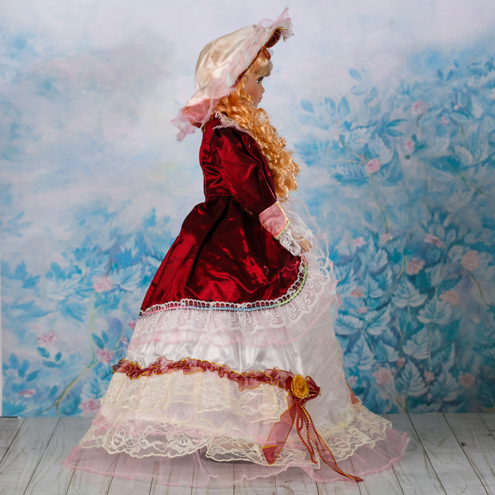 Кукла коллекционная керамика "Барышня в бордовом" 60 см
