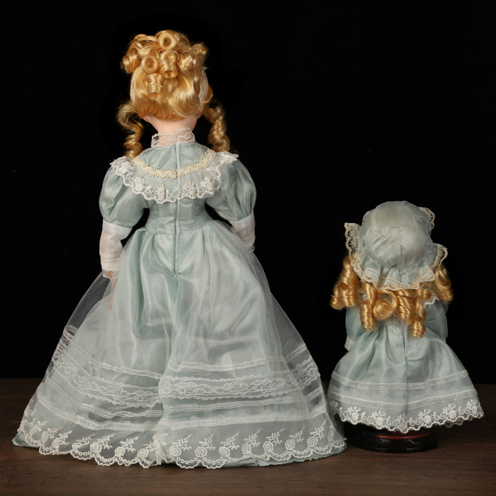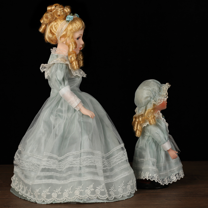 Кукла коллекционная "Мама с дочкой в голубом платье" 40 и 23 см