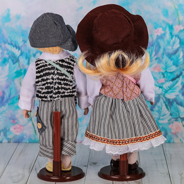 Кукла коллекционная парочка поцелуй (набор 2 шт) "Поцелуй в жилетиках" 30 см