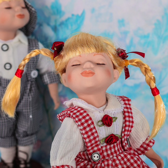 Кукла коллекционная парочка поцелуй набор 2 шт "В одежде в клеточку" 30 см