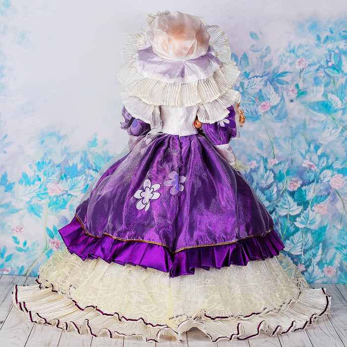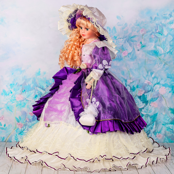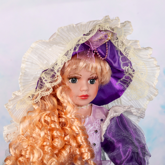 Кукла зонтик коллекционная керамика "Анабэль в светло-фиолетовом платье" 55 см