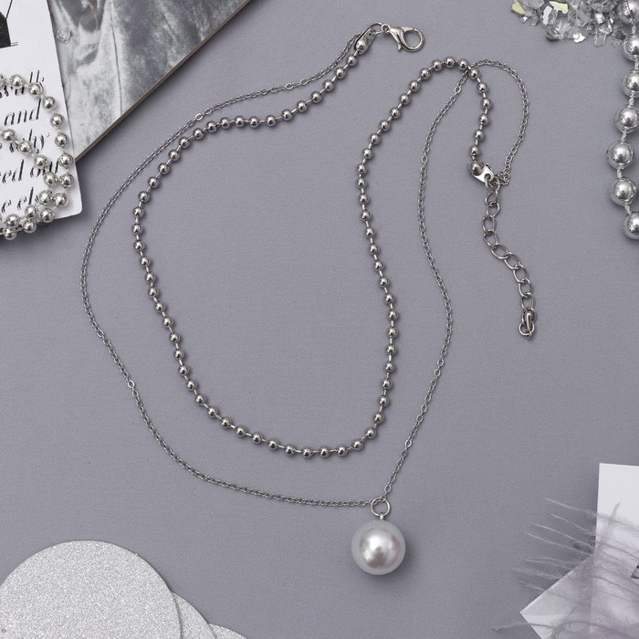 Кулон 2 нити "Жемчужная бусина", цвет белый в серебре, 40 см