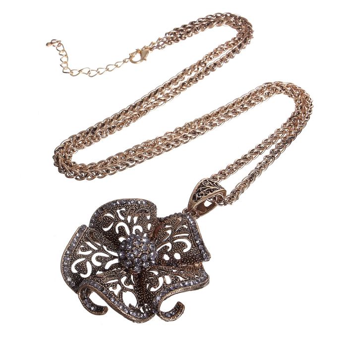Ни один стиляга не будет выглядеть современно без искусно подобранных украшений, которые завершат его образ! Бижутерия — это современная недорогая альтернатива изделиям из золота и прочих драгоценных металлов. Кулон "Цветок" объёмный, цвет серый в золоте, 70см — это то, что добавит вам шарма!