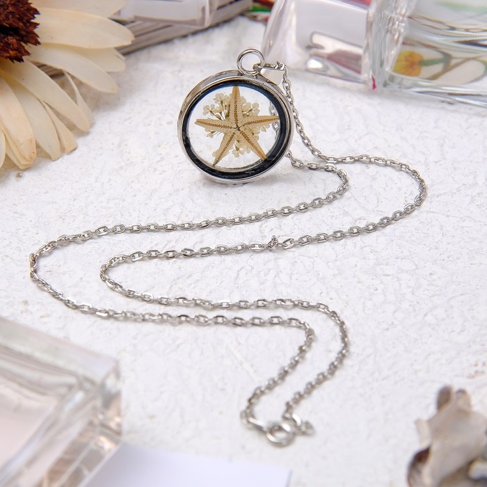 Кулон из стекла "Венеция" круг, морская звезда, цвет бежевый в серебре, 50 см