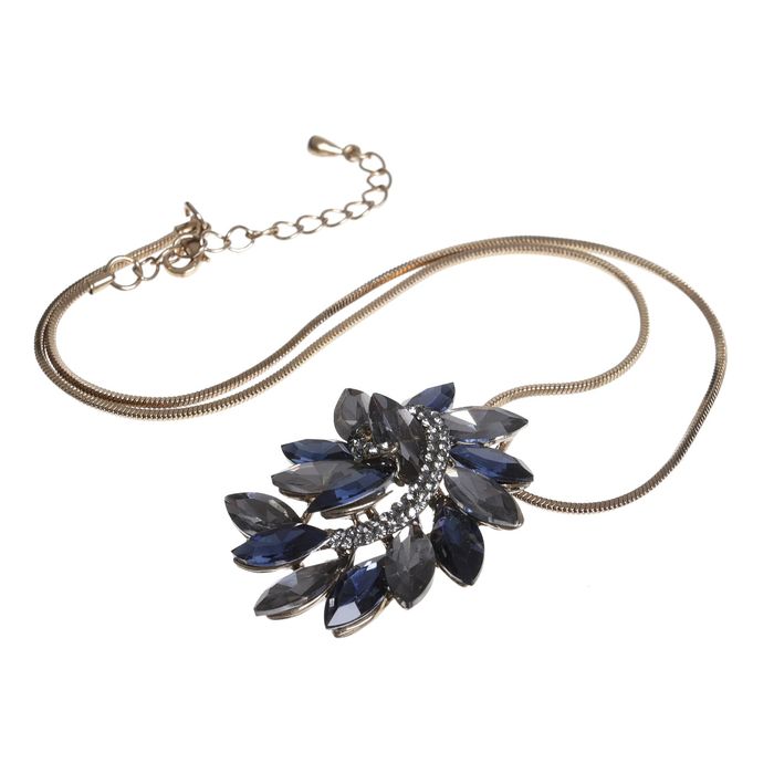 Ни один стиляга не будет выглядеть современно без искусно подобранных украшений, которые завершат его образ! Бижутерия — это современная недорогая альтернатива изделиям из золота и прочих драгоценных металлов. Кулон "Листочки" завиток, цвет серо-синий в золоте — это то, что добавит вам шарма!