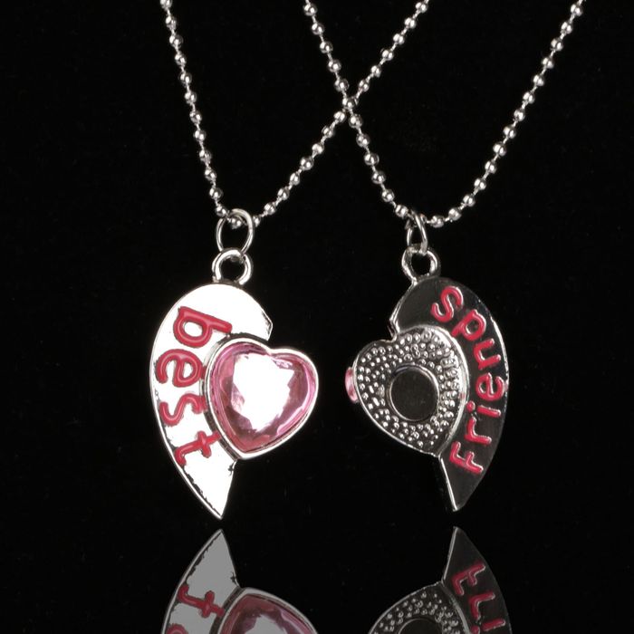 Ни один стиляга не будет выглядеть современно без искусно подобранных украшений, которые завершат его образ! Бижутерия — это современная недорогая альтернатива изделиям из золота и прочих драгоценных металлов. Кулон "Неразлучники", best friends, сердце на магните, цвет розовый в серебре, 40см — это то, что добавит вам шарма!