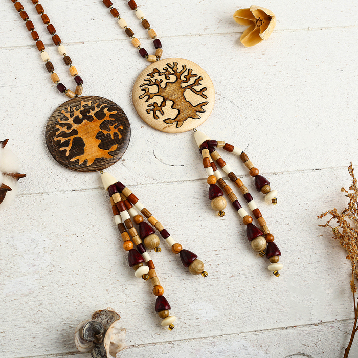 Ни один стиляга не будет выглядеть современно без искусно подобранных украшений, которые завершат его образ! Бижутерия — это современная недорогая альтернатива изделиям из золота и прочих драгоценных металлов. Кулон ручная работа, деревянный "Акация с подвеской", цвет МИКС — это то, что добавит вам шарма!