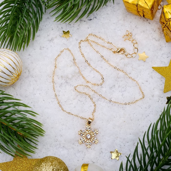 Ни один стиляга не будет выглядеть современно без искусно подобранных украшений, которые завершат его образ! Бижутерия — это современная недорогая альтернатива изделиям из золота и прочих драгоценных металлов. Кулон "Снежинка", цвет белый в золоте, 45см — это то, что добавит вам шарма!