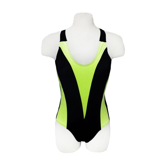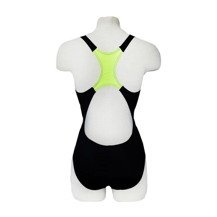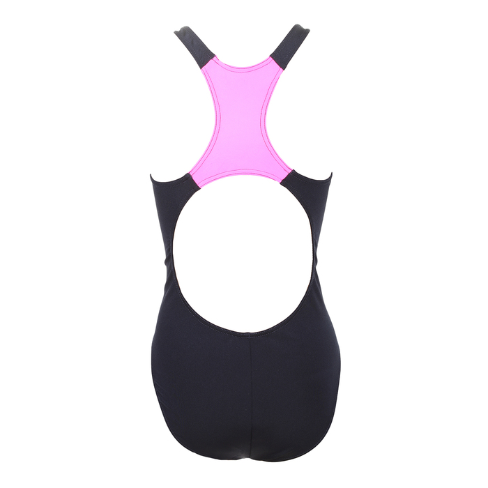 Купальник подходит для регулярных тренировок в бассейне. Изделие из эластичной и плотной ткани хорошо облегает тело спортсмена и улучшает его гидродинамические свойства. Купальник имеет подкладку, широкие бретели, круглый глубокий вырез горловины и фигурный на спинке. Симметричные вставки контрастного размера делают силуэт изящным.