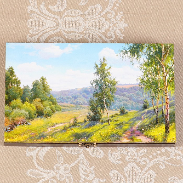Купюрница-шкатулка "Летний пейзаж. Вид 19", 25х15х3,5 см, венге