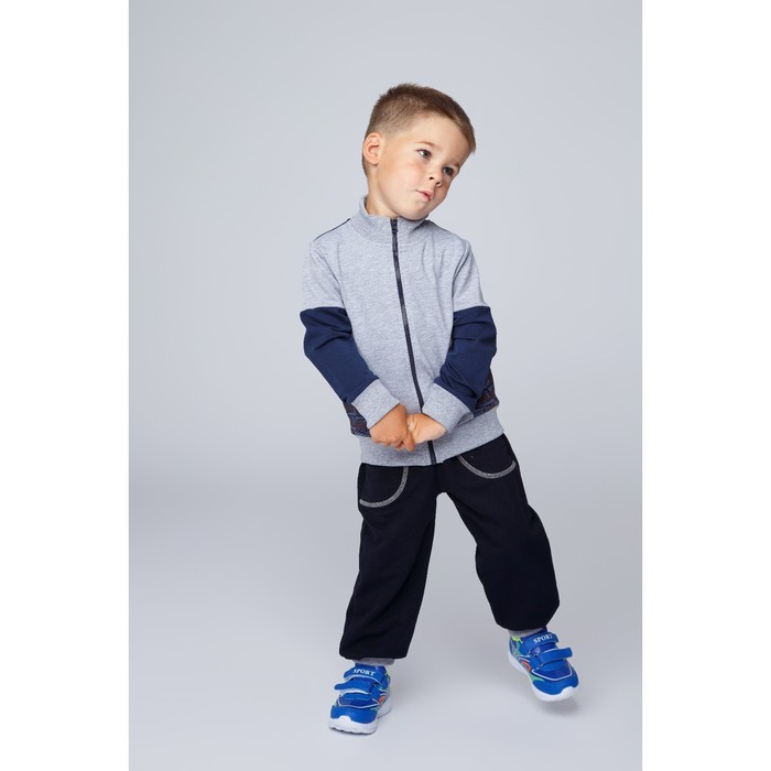 Куртка для мальчика, рост 110 см,цвет тёмно-синий /серый меланж Н787
