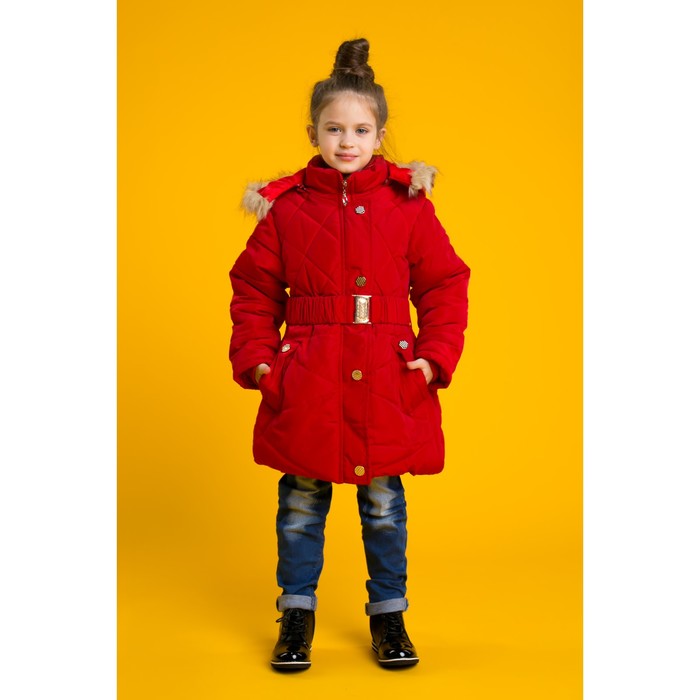Куртка удлиненная для девочки "Золотые пуговки", рост 122-128 см, цвет красный