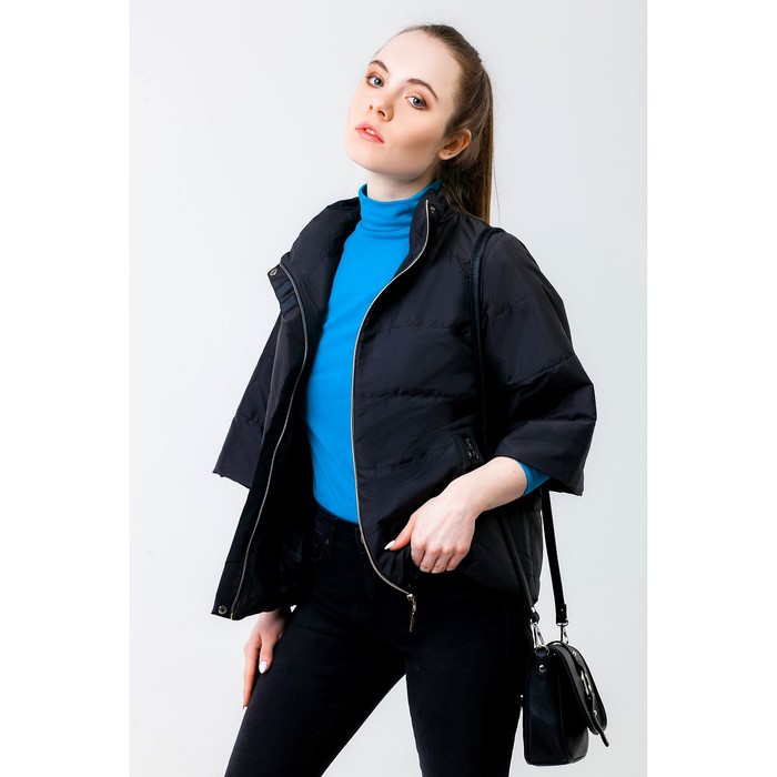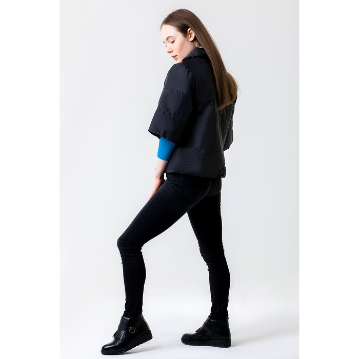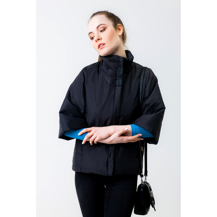 Куртка женская, рост 168 см, размер 46, цвет чёрный (арт. 63) — модель с укороченными рукавами, воротником-стойкой и двумя карманами, которая отлично подойдёт для повседневной носки.