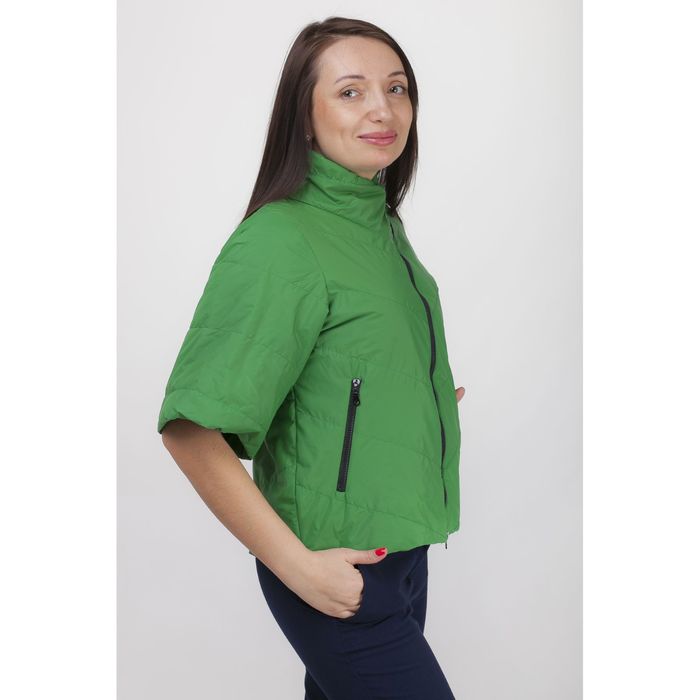 Куртка женская, рост 168 см, размер 46, цвет зелёный (арт. 39) — модель на косой молнии имеет укороченные рукава и два кармана. Она отлично подойдёт для повседневной носки.