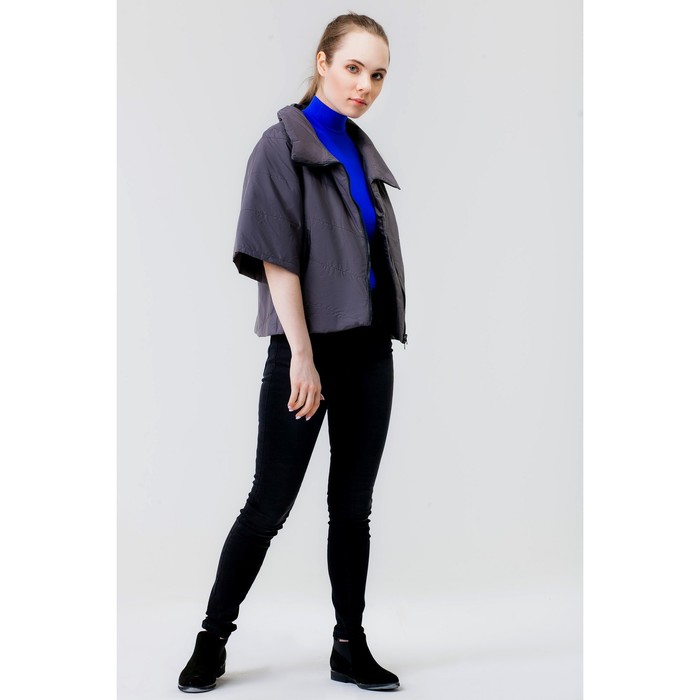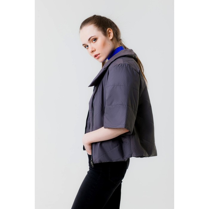 Куртка женская, рост 168 см, размер 48, цвет асфальт (арт. 39) — модель на косой молнии имеет укороченные рукава и два кармана. Она отлично подойдёт для повседневной носки.