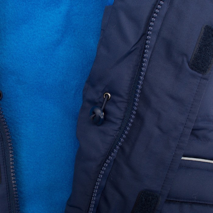 - Съёмный капюшон на молнии снабжён утяжкой и защитой подбородка.