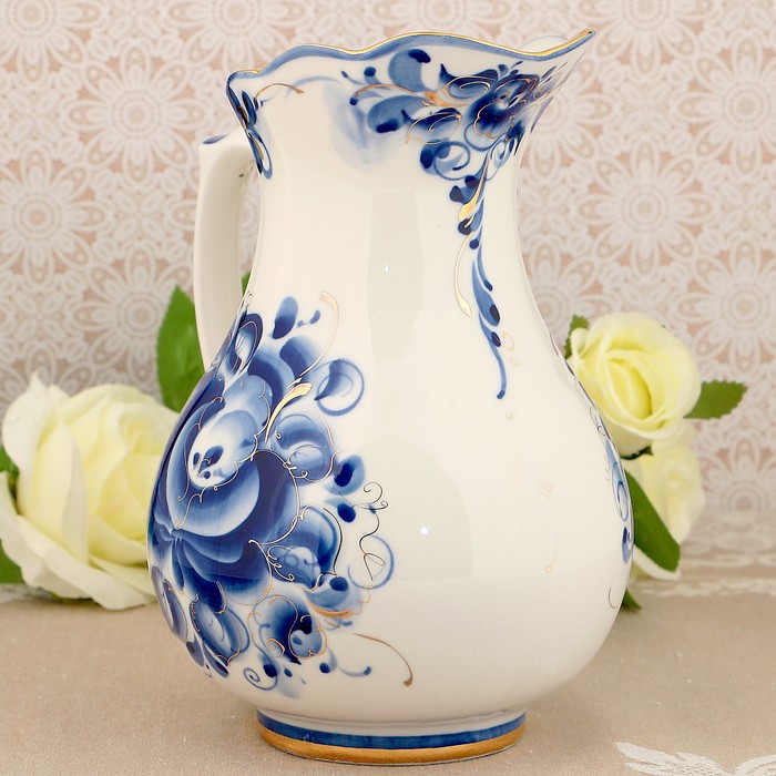 Кувшин «Водолей», гжель, золото, 1.4 л