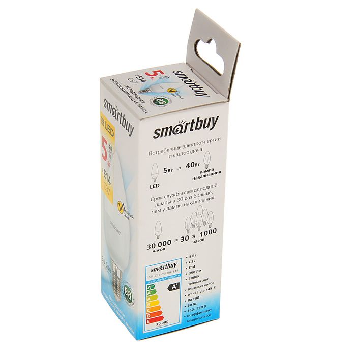 Лампа cветодиодная Smartbuy, C37, E14, 5 Вт, 3000 К, теплый белый