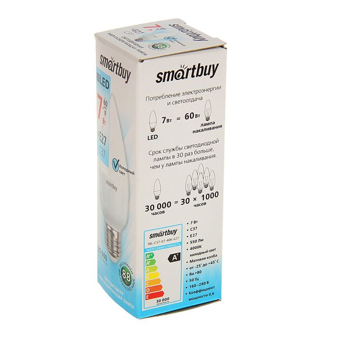 Лампа cветодиодная Smartbuy, C37, E27, 7 Вт, 4000 К, холодный белый