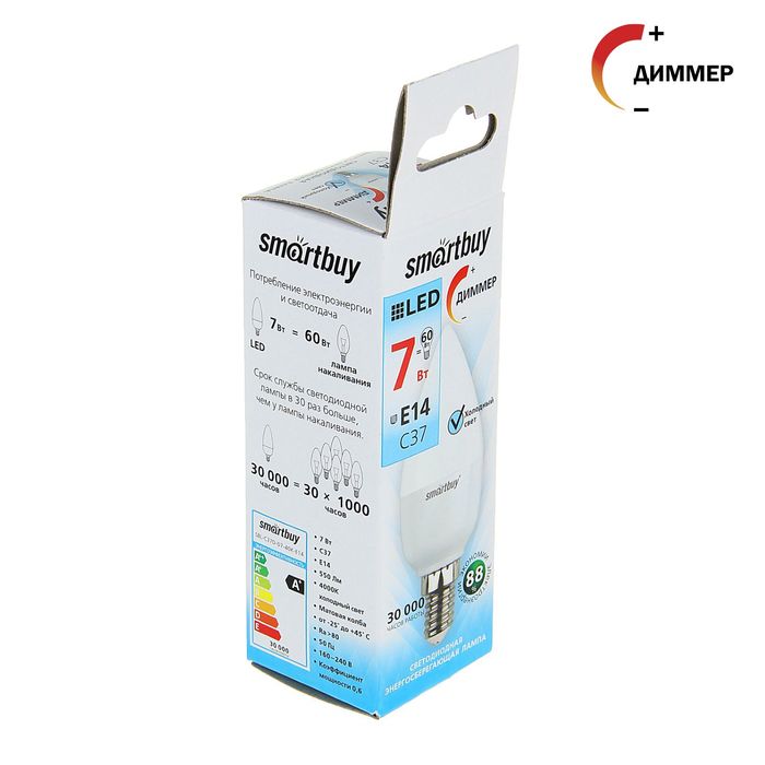 Светодиодная лампа Smartbuy с регулируемой яркостью используется в жилых помещениях и небольших офисах. Позволяет экономить до 90 % электроэнергии по сравнению с обычной лампой накаливания, но не теряет при этом качества излучения.