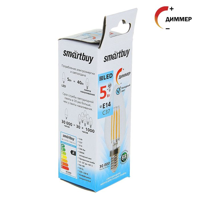 Светодиодная лампа Smartbuy с регулируемой яркостью используется в жилых помещениях и небольших офисах. Позволяет экономить до 90 % электроэнергии по сравнению с обычной лампой накаливания, но не теряет при этом качества излучения.