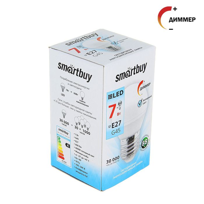 Лампа cветодиодная диммируемая Smartbuy, G45, 7 Вт, E27, 4000 К, холодный белый