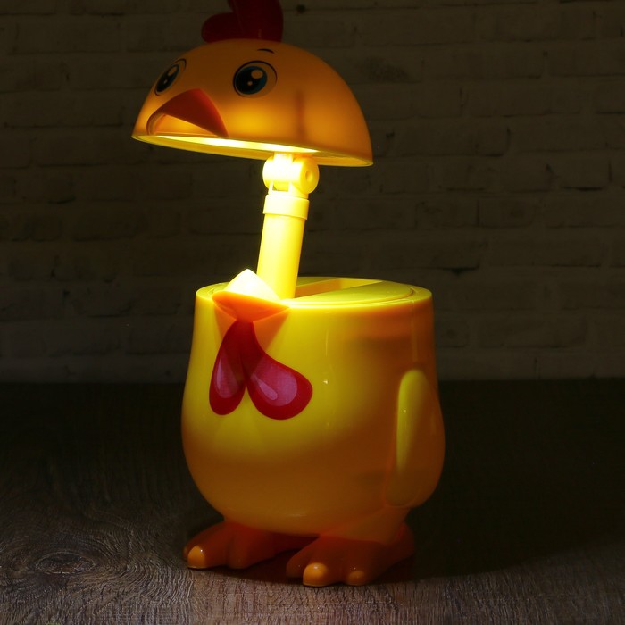 Лампа настольная 2 режима 2W LEDх16 USB "Цыплёнок" копилка 20х11х10,5 см — одна из важных деталей освещения детской или спальной комнаты. Этот небольшой предмет удивит вас своим дизайном и порадует мягким рассеянным светом. Он пригодится в семье, где есть маленькие дети: приглушённый свет не позволит испугаться ребёнку, если он проснулся ночью.