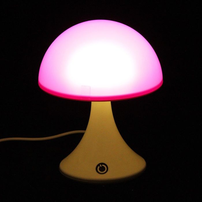 Лампа настольная "Гриб" 2W LED (МИКС цветов, сенс.кнопка, АКБ, USB) 12х12х15 см — одна из важных деталей освещения детской или спальной комнаты. Этот небольшой предмет удивит вас своим дизайном и порадует мягким рассеянным светом. Он пригодится в семье, где есть маленькие дети: приглушённый свет не позволит испугаться ребёнку, если он проснулся ночью.