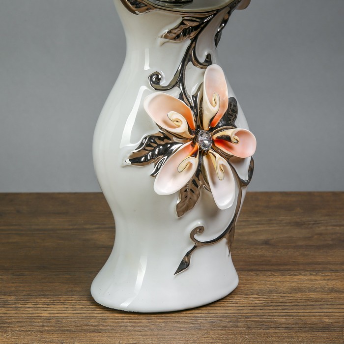 Лампа настольная керамика "Цветок из перламутра" белая+серебро Е14 25W 37,5х25х18,5 см