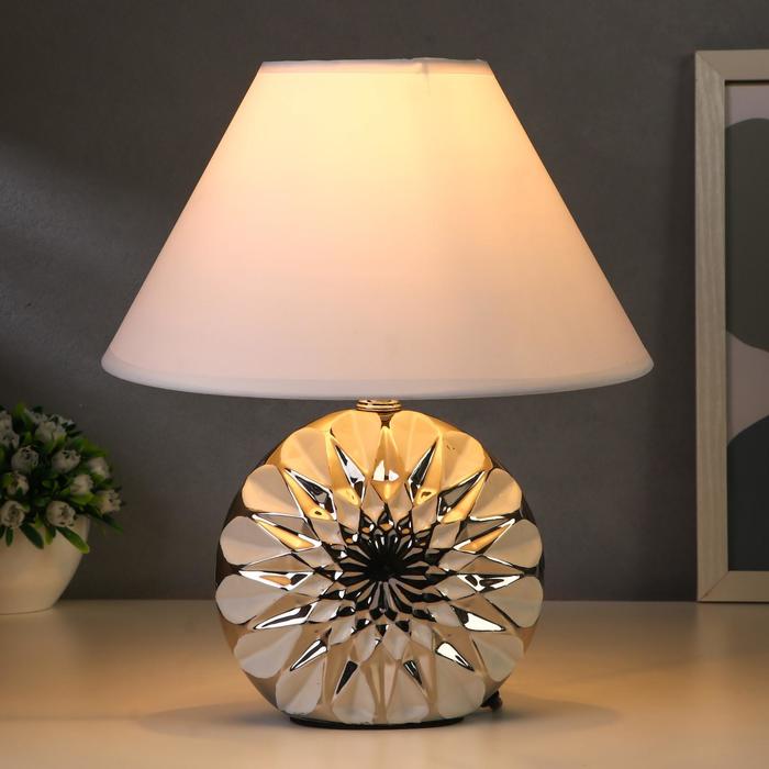 Лампа настольная керамика "Солнце" белая+серебро Е14 25W 32х20х20 см