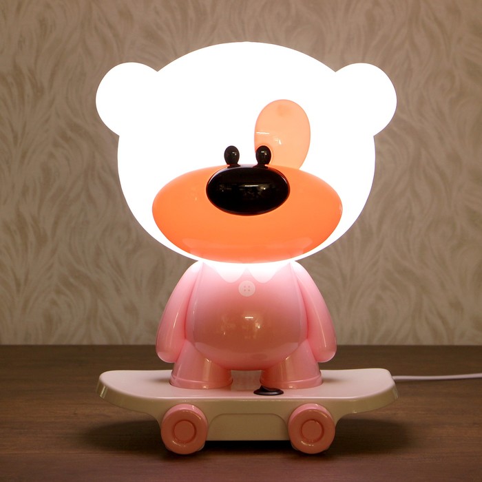 Лампа настольная LED 220В "Розовый мишка на скейте" 30х22х17 см — одна из важных деталей освещения детской или спальной комнаты. Этот небольшой предмет удивит вас своим дизайном и порадует мягким рассеянным светом. Он пригодится в семье, где есть маленькие дети: приглушённый свет не позволит испугаться ребёнку, если он проснулся ночью.