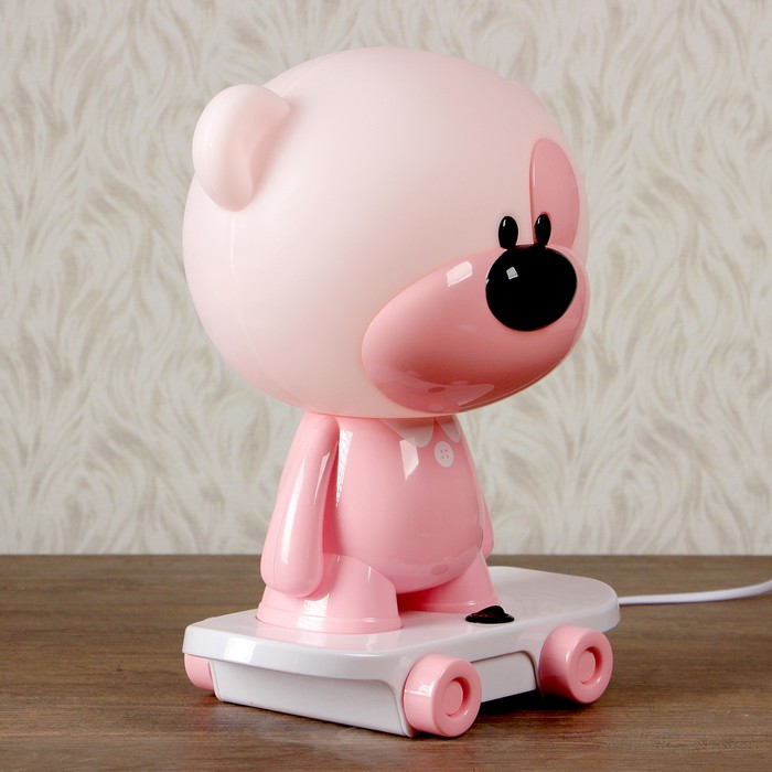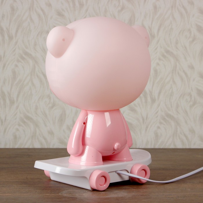 Лампа настольная LED 220В "Розовый мишка на скейте" 30х22х17 см