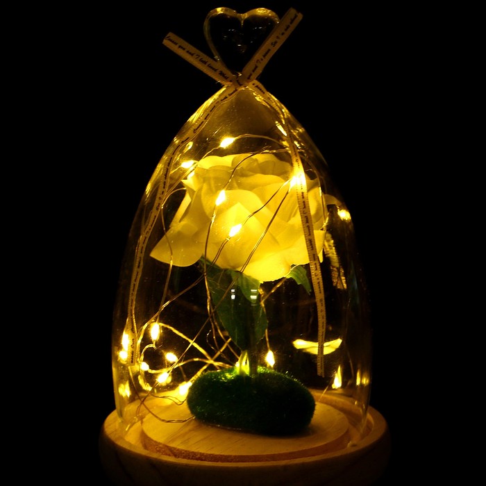 Лампа настольная LED "Колба с белой розой" 3 ААА 20х12х12 см