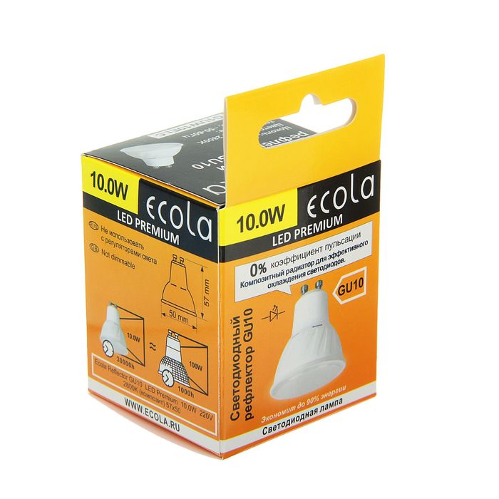 Лампа светодиодная Ecola, GU10, LED Premium, 10,0 Вт, 220 В, 2800 K, 57x50